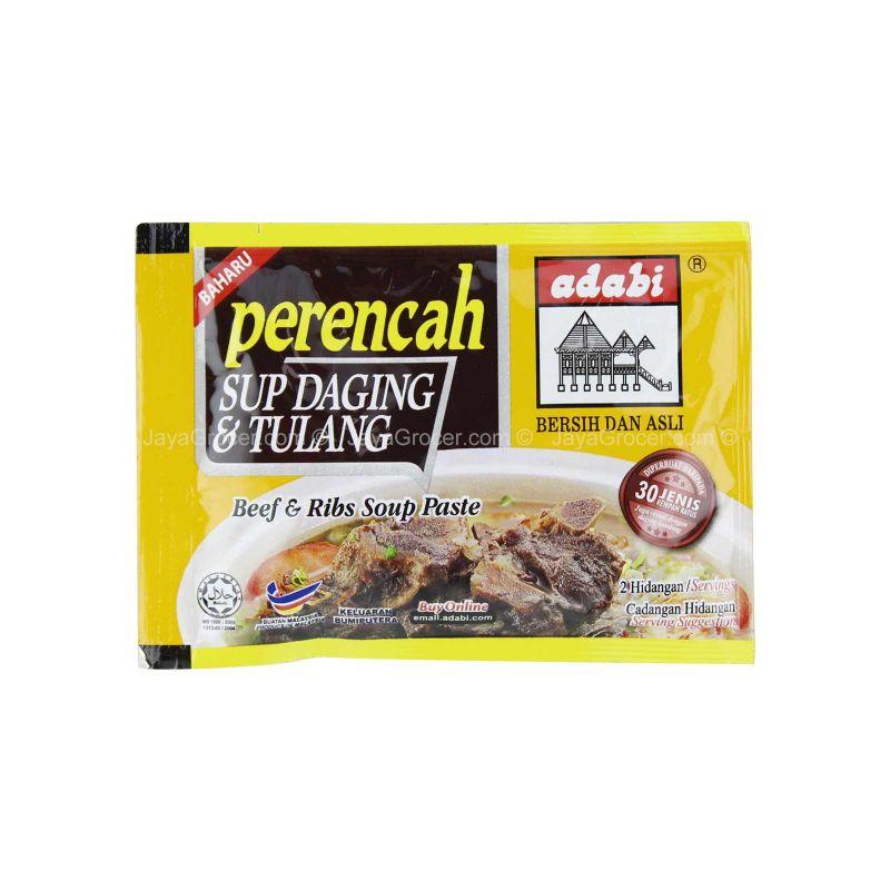 A packet of Adabi Beef & Ribs Soup Paste contains variety of spices and herbs that are well-prepared. Boil the meat or beef bones until tender, add Adabi Beef & Ribs Soup Paste in, then bring everything to simmer. After 10 minutes, over medium heat, get in the holland onions potatoes , carrots and celery. Enjoy the dish!